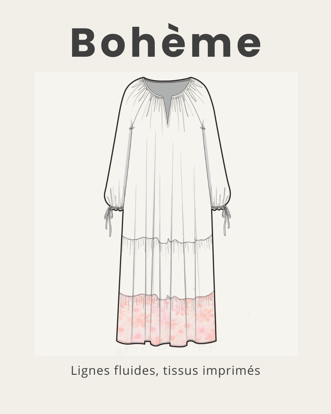 Le style bohème privilégie les silhouettes fluides et féminines. Les vêtements sont souvent amples, avec des détails comme des fronces, des manches bouffantes ou des volants.